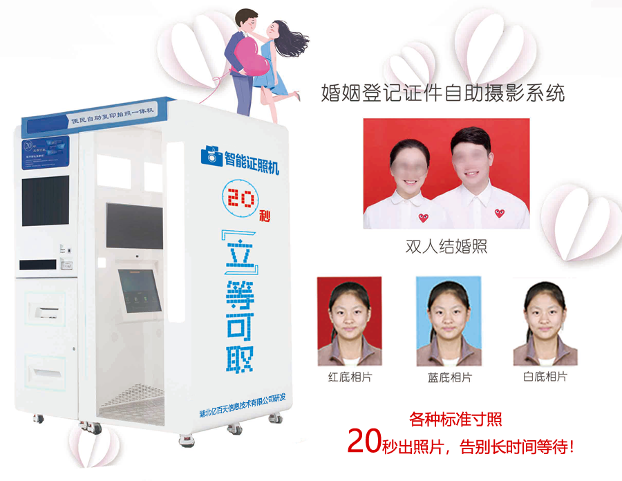 智能證照機(jī)即自助照相機(jī)、證照通、自動照相、自動拍照、照相亭、自助照相亭、自動照相亭、便民自助照相設(shè)備等的統(tǒng)稱。設(shè)備操作全程人性化語音動畫及實(shí)時人像提示,20秒即可以取照和回執(zhí),解決傳統(tǒng)的人工照像模式,回執(zhí)單相片隔天拿。節(jié)省了人工時間,為客戶提供便利。